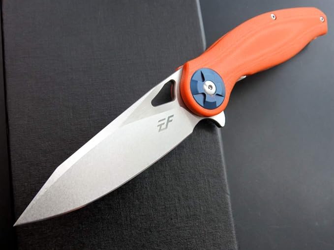 Eafengrow EF76 Ball Bearing Folding Knife for Camping EDC Pocket Knife with G10 Handle & D2 Stone-washed Blade Hunting Outdoor Tool (EF76-orange)