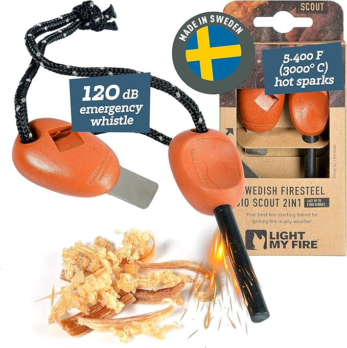 - BUILT-IN EMERGENCY WHISTLE INCLUDED with grip-friendly design, safe and so easy to use even a child can ignite the ferrocerium rod flint striker. Our enduring fire striker won’t let you down. Ideal outdoor emergency survival kit. Color: rustyorange