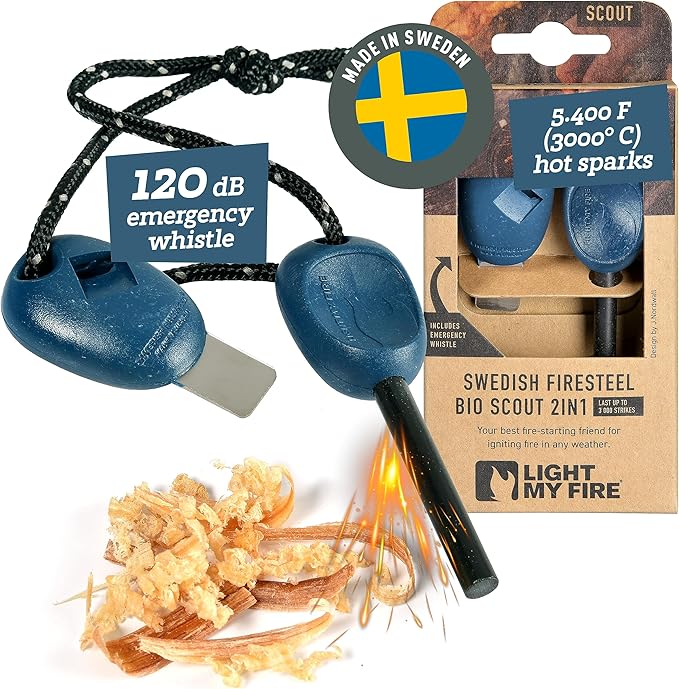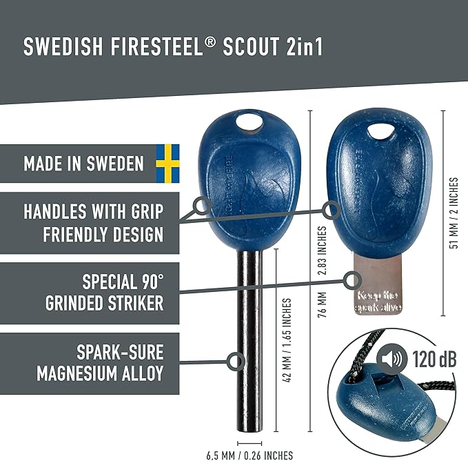 - BUILT-IN EMERGENCY WHISTLE INCLUDED with grip-friendly design, safe and so easy to use even a child can ignite the ferrocerium rod flint striker. Our enduring fire striker won’t let you down. Ideal outdoor emergency survival kit. Color: hazyblue