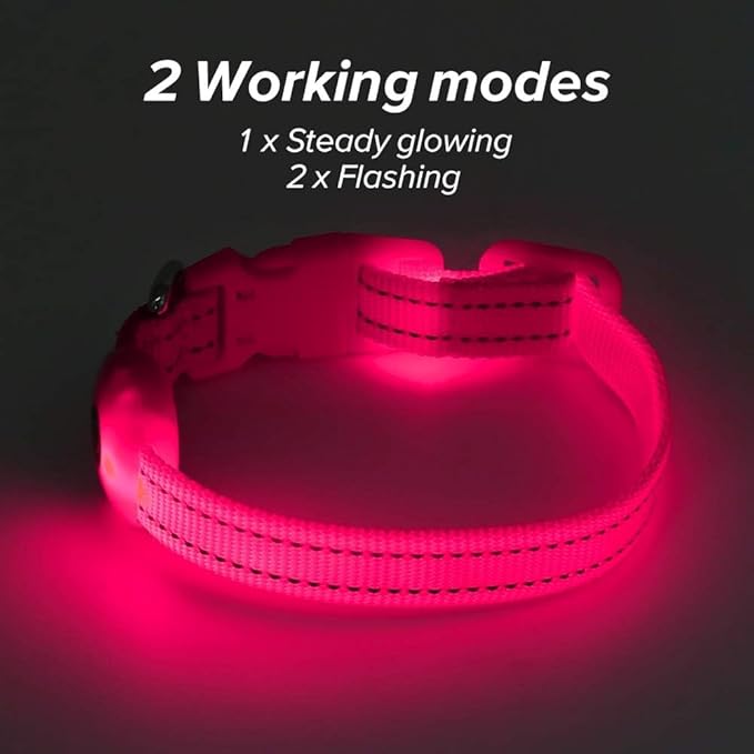 BSEEN Light Up Dog Collar - Reflective LED Dog Collar Rechargeable Glowing Pet Collar for Puppies & Cats, Safety Dog Lights for Night Walking (Pink)