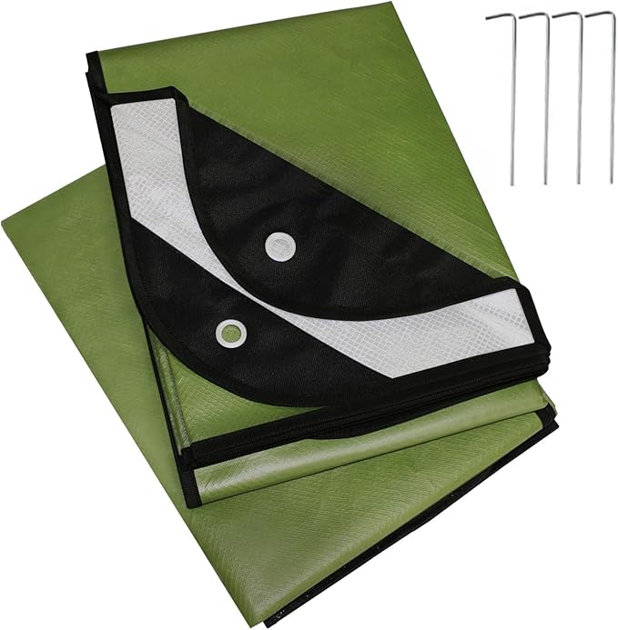 - ⛺️【Reusable and Durable】Rugged 4 Layers including PE, Polyester Mesh and Aluminum Foil. Suitable for Many Situations, including Raincoat, Camping, Hiking, Mountainning, Snowfield and Heavy Duty. Also Can be Used as Car Protection, Sunshine Shelter, Pets Shelter, SOS Signal, Solar Heater for Many Times.