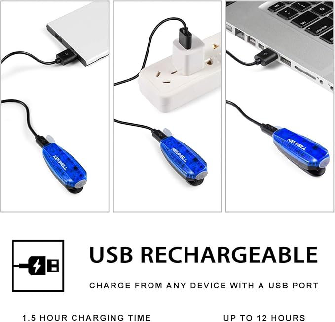 - USB-C RECHARGEABLE-Newest Type C USB Rechargeable safety lights, No batteries needed anymore! These clip on Led safety lights can be charged from any device with a USB port. Each full charge (~1.5 hour) could last up to 12 hours. Quick charge to enjoy long running time!