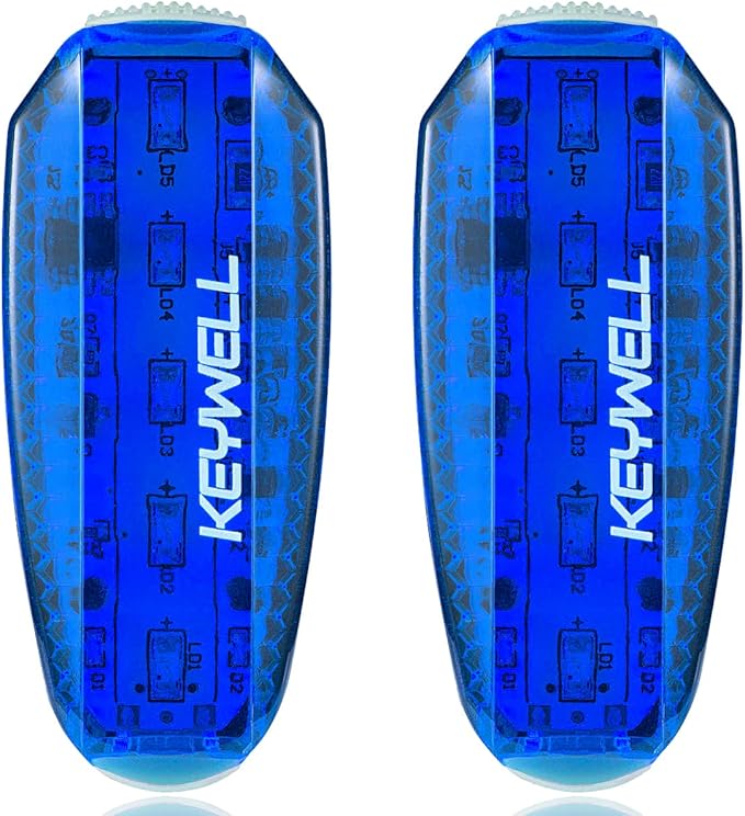 - SUPER BRIGHT-BE SEEN CLEARLY- Keywell Led safety lights are equipped with 5 super bright LEDs, slim, lightweight, compact with 5 lighting modes (steady low/steady high/ flashing slow/blinking/fast-slow flashing) .Perfect for runners,walkers, strollers,kids,women,dogs & now bicycle rear lights.