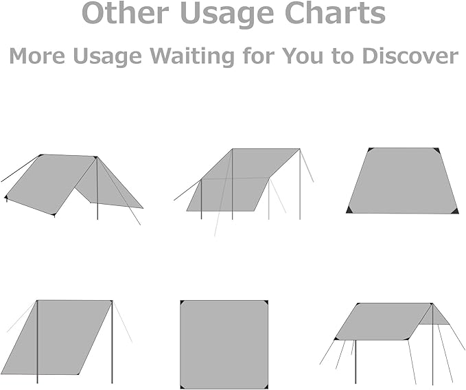 - 🍀 EASY TO USE: Unfold the camping tarp and use it as a tent footprint on the ground to protect the tent from dust, dirt and sharp objects; use a rope and tent pole can easily create a hammock rain fly for shade and awning; Put the tent tarp directly on the floor as a picnic mat, tent footprint, beach blanket etc