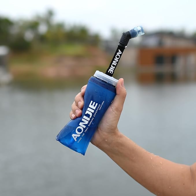 TRIWONDER TPU Soft Folding Water Bottles BPA-Free Collapsible Flask for Hydration Pack - Ideal for Running Hiking Cycling Climbing (Straw)