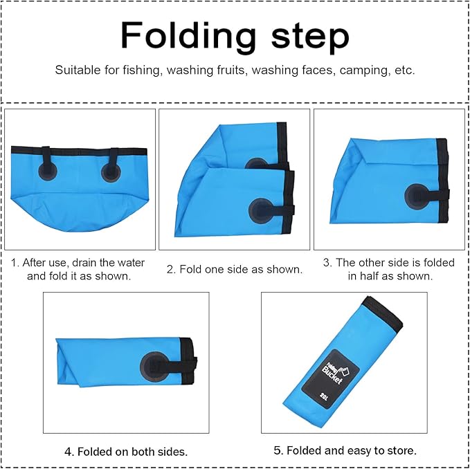 - 【Multi-functional Fold Bucket】: This blue collapsible bucket is ideal to use for a range of tasks. It is suitable to use for an RV, camping, fishing, boating and more. Whether you need a fish bucket, portable wash, travel basin or anything else you can count on this Compact Collapsible Bucket to get the job done.