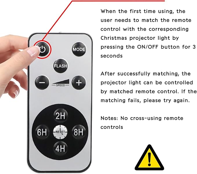 - Remote Control, Wireless remote control allows you to turn on or off, set timer anywhere in and around the house. You can also freely set the speed of moving patterns by Rf remote control. And you can set the timer on this projector light that on at dusk and off at dawn.