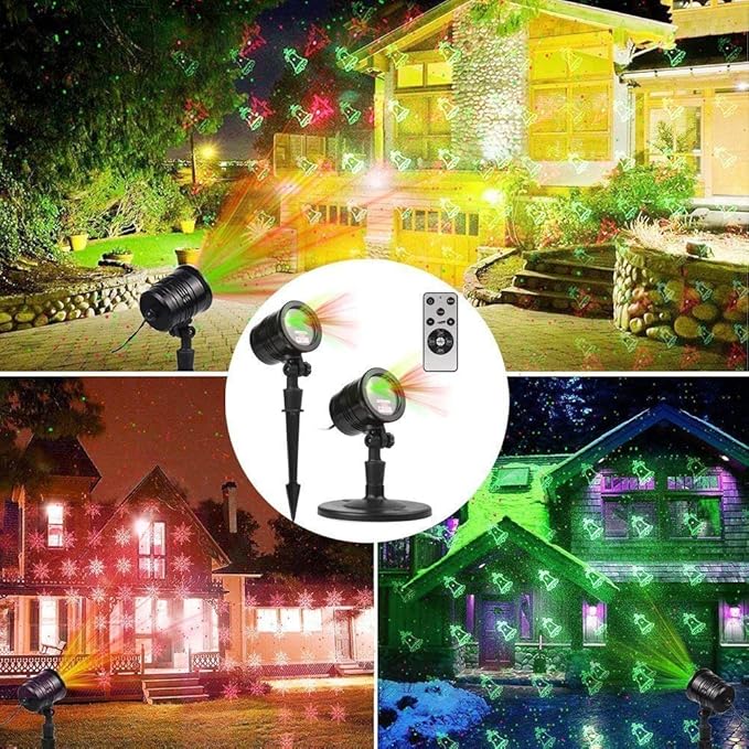 Christmas Laser Lights, Projector Lights Landscape Spotlight Red and Green Star Show with Christmas Decorative Patterns for Indoor Outdoor Garden Patio Wall