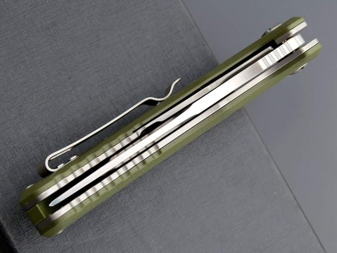 Eafengrow EF908 Pocket Knife Sanding Finished D2 Steel Blade G10 Handle Pocket Clip and Liner Lock with Titanium Coating Tactical Camping Survival Tool Knives (GREEN)
