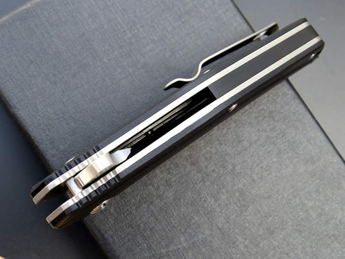 - G10 HANDLE WITH POCKET CLIP(TITANIUM COATING) - Full hand grip is superior with ergonomically design,G10 handle has excellent balance of hardness and corrosion resistance, offers a solid grip and comfortable in-hand feel,easy operation.