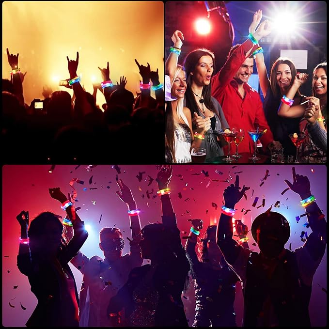 - [Glow in the dark party supplies] Sparkling lights, full of atmosphere, suitable for party scene, birthday wedding parties,surprise parties, glow in the dark party, music festivals, disco, masquerades, Bachelor bachelorette party, New Year, beach, camping, campfires etc, glow in the dark LED bracelet, become the party favors and grab the attention of your favorite him/her!Plus 4 extra batteries as gift.Ensuring long hours of fun.