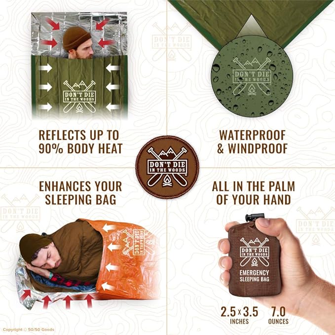 - ULTRALIGHT, WATERPROOF, & SUPER COMPACT – Hate carrying extra weight? It’s so small and light, you’ll forget it’s even there. We’ve designed the DDITW Emergency Sleeping Bag with the perfect balance of durability & weight at only 7 ounces (the weight of a small apple). Stash them in each of your cars and backpacks and always be prepared.