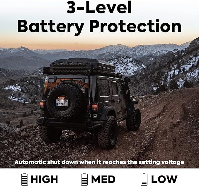 - 3-Level Battery Protection - The car refrigerator will automatically power off according to your setting gear to prevent the car battery from being depleted. 3 gears can be selected.