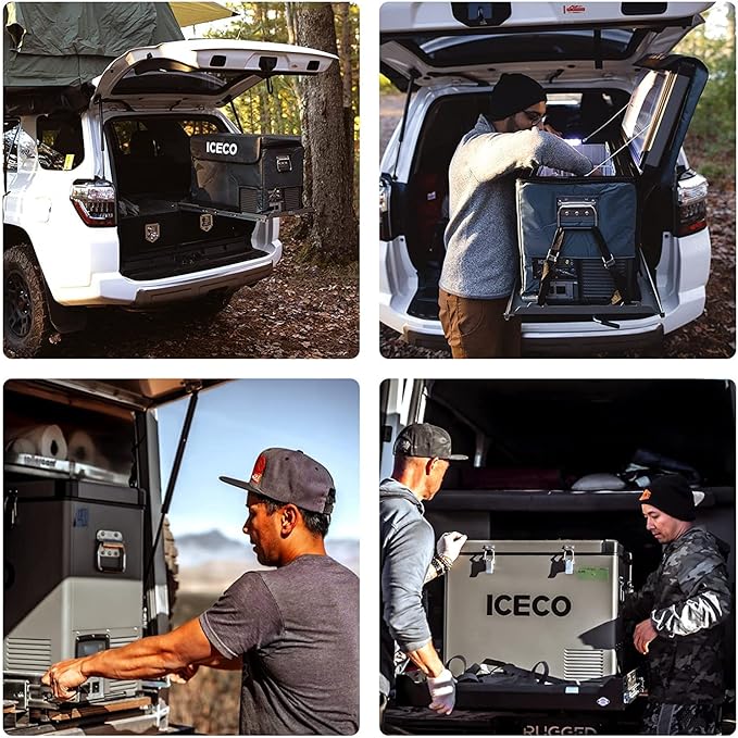 - User-friendly Design - Height design fit for tonneau cover of pickup truck. Metal shell, thickened inner wall and foldable pull-down lock provide good insulation conditions. Convenient interior lights for easy access in the dark. Two Removable wired baskets to allow quick emptying and restocking of the fridge.