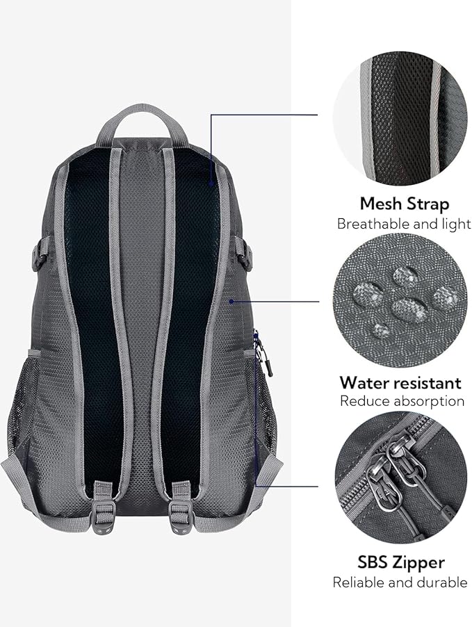 • ULTRA-LIGHTWEIGHT AND PREMIUM MATERIAL: Recycled nylon material makes this backpack only 10.2oz, easy to fold and carry. Polyester linings help relieve the stress on your shoulders. And durable SBS zippers make opening silky smooth