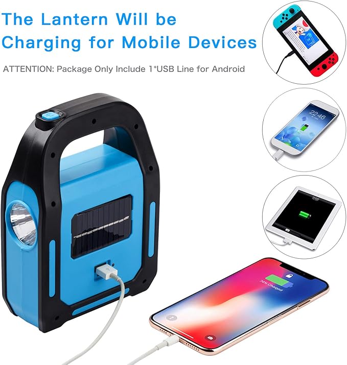 1 Pack 3 in 1 Solar USB Rechargeable Brightest COB LED Camping Lantern, Charging for Device, Waterproof Emergency Flashlight LED Light