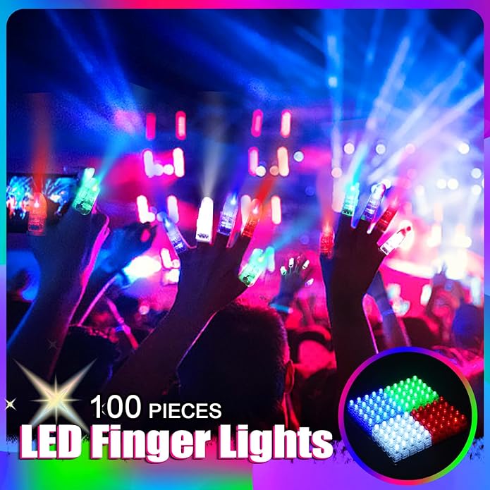 100 Pack LED Finger Lights, Flashing Light Up Rings Bulk Party Favors | Glow in The Dark Party Supplies for Kids and Adults