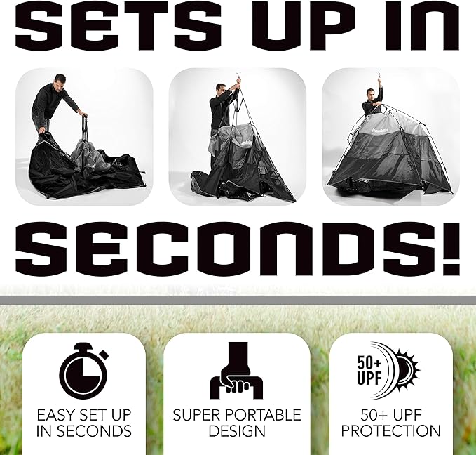 - UPF 50+ Sun Protection: This easy up tent is just what you need for providing you and the kids UPF 50+ protection for all-day shade.