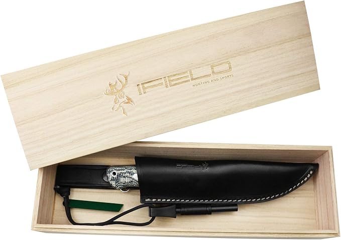- 🌲 Crafted for the bushcrafter: With a design that balances precision and ruggedness, this survival knife meets the needs of bushcraft enthusiasts. Its satin-finished blade and toothed loin improve grip and control, enhancing your connection with nature
