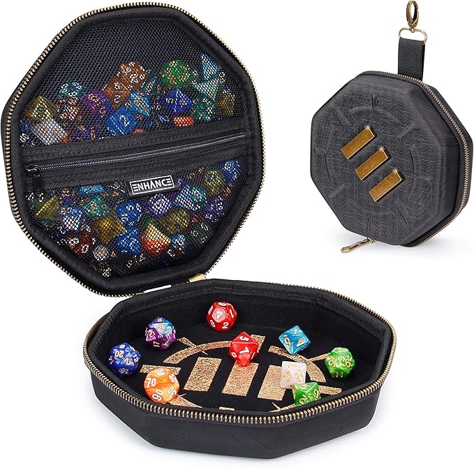 ENHANCE DND Dice Tray and Case - DND Dice Holder for up to 150 D&D Dice with Rugged Hard Shell Exterior and Protective Soft Interior - Rolling Tray Perfect for Game Night (Black)