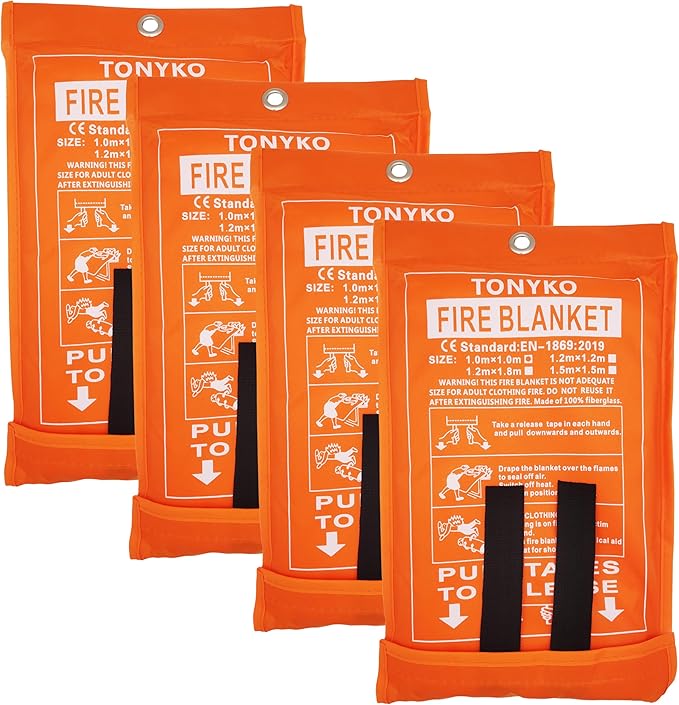 - CE Certified TONYKO Fire Blanket: Conform to CE safety standards EN 1869-2019. Made from quality flame retardant material. Package: 4PACK Fire Suppression Blanket