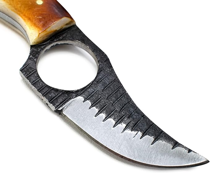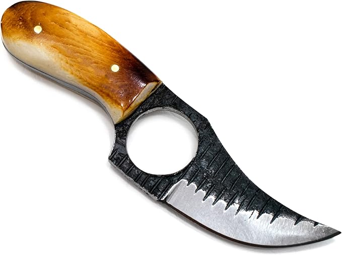 - FINGER HOLE DESIGN - to ensure a steadfast grip gives the user optimum handling and safety with powerful delivery while skinning, hunting or slicing