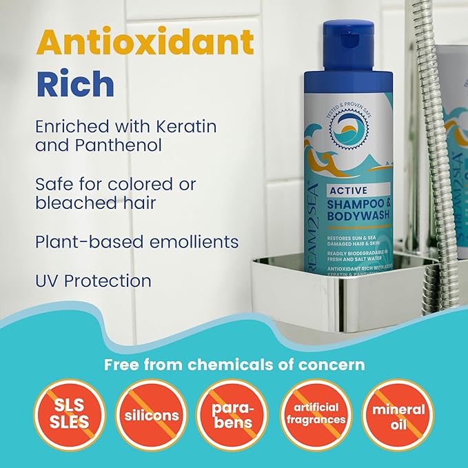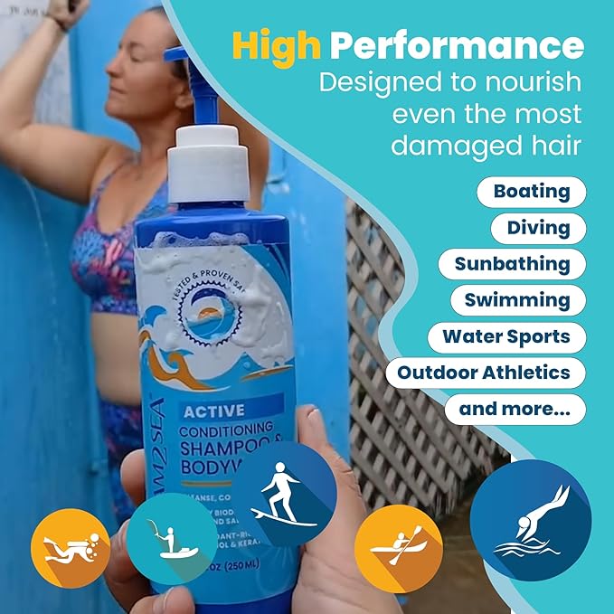 - PROTECT HAIR WITH UV ABSORBENT FORMULA: Moisturize & shield your hair from the elements. This biodegradable wash is infused with Keratin and Panthenol that targets the care and treatment of damaged and colored hair & scalp. Absorbs and and blocks harmful effects of the sun, while protecting its fibers. Great to use for ocean, beach and camping getaways!