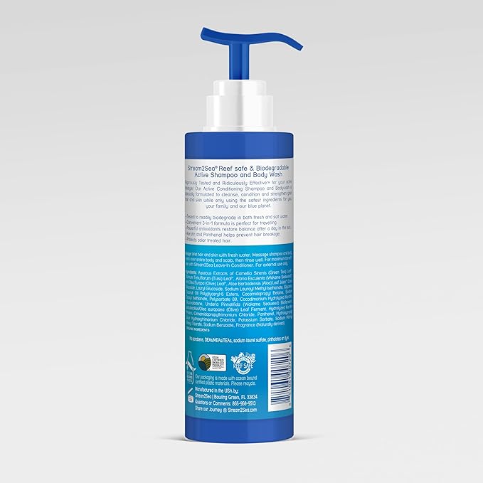 STREAM 2 SEA 3 in 1 Shampoo Body Wash and Conditioner, Reef Safe, All Natural and Organic Camping Shampoo and Liquid Soap, Skin and Hair Care for Men and Women, Sulfate and Paraben Free, 32 oz