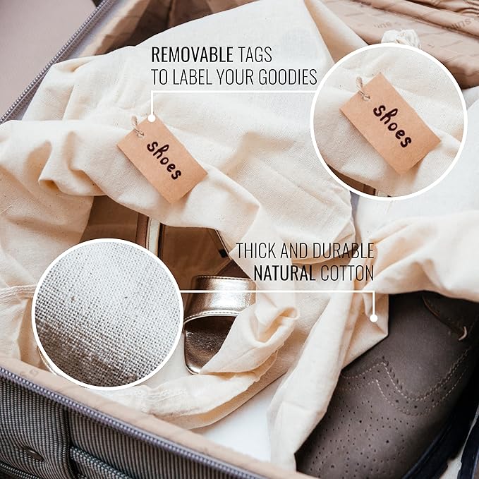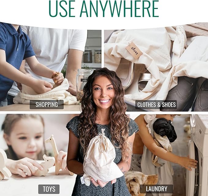 - Sustainable - no more plastic. Use this organic, biodegradable cotton/muslin storage bag with a smooth and delicate fabric, which allows for air circulation. Easy to care extra large canvas bags. Can also be used as cotton laundry bags.