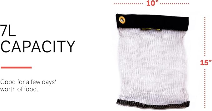 - Secure Closure System – Equipped with a high-strength carabiner and reinforced grommet, the RatSack Cache Bag allows for easy hanging from trees, bear poles, or other elevated locations. The tightly woven mesh prevents animals from chewing through, offering a reliable alternative to plastic or fabric storage bags.