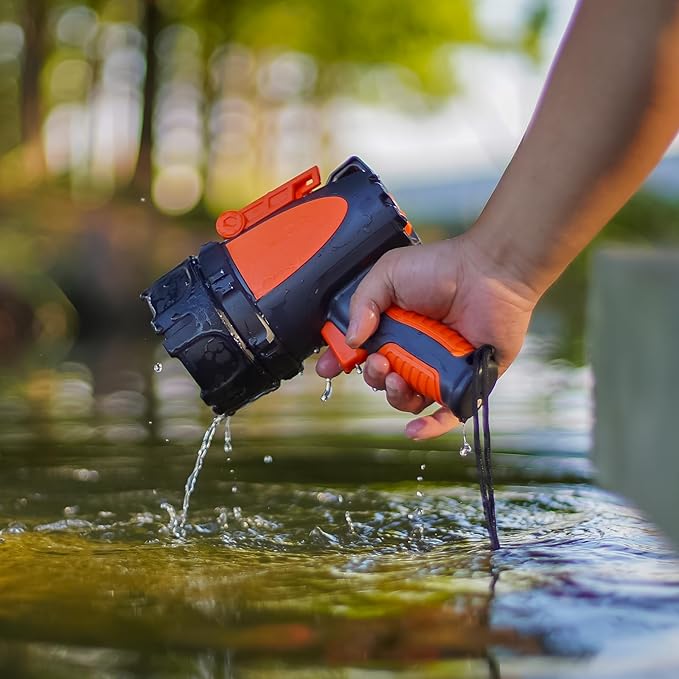 - WATERPROOF DESIGN. Don't let water dampen your spirits. Our GOODSMANN Rechargeable Spotlight boasts IP67 waterproof technology, providing exceptional protection against water ingress. Its innovative design even allows the spotlight to float on water, giving you peace of mind when facing wet or aquatic environments. This spotlight is ready to tackle any adventure. Plus, our dedicated 1-year after-sales support ensures you have the assistance you need whenever you need it.