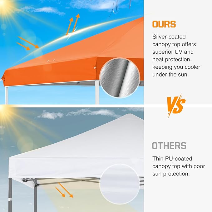 EAGLE PEAK Pop Up Canopy Tent with Wheeled Carry Bag, 8 Stakes, 4 Ropes, 4 Weight Bags, Easy Set Up Tent Canopy, 10x10 ft, 100sqft of Shade, Orange