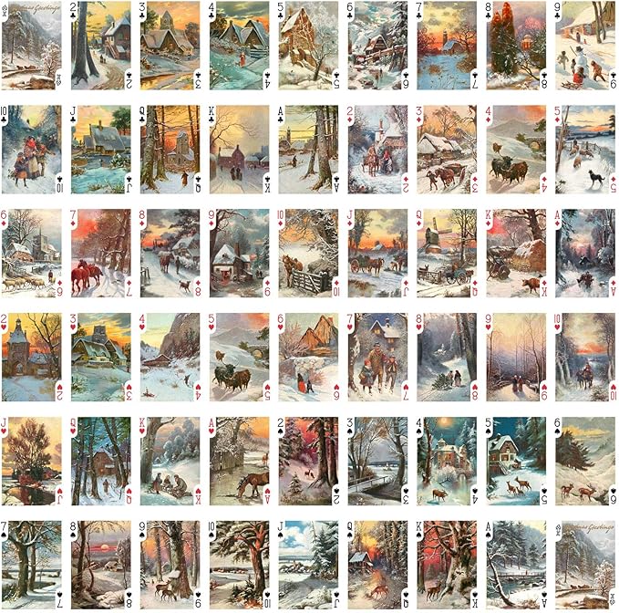 Winter Forest Playing Cards (Poker Deck 55 Cards All Different) Christmas Winter Forest Rural Pastoral Landscapes Vintage Photo Postcards