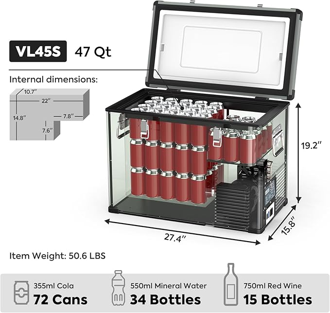 - User-friendly Design - Height design fit for tonneau cover of pickup truck. Metal shell, thickened inner wall and foldable pull-down lock provide good insulation conditions. Convenient interior lights for easy access in the dark. Two Removable wired baskets to allow quick emptying and restocking of the fridge.