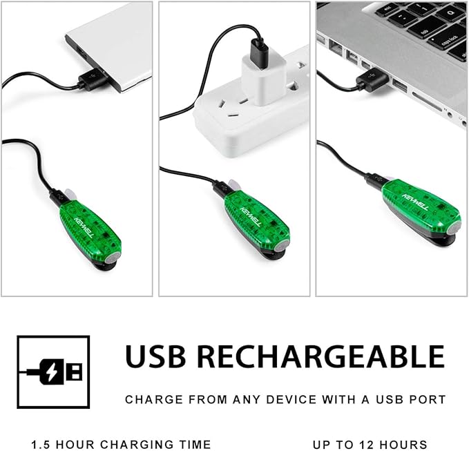 - USB-C RECHARGEABLE-Newest Type C Rechargeable safety lights, No batteries needed anymore! These clip on Led safety lights can be charged from any device with a USB port. Each full charge (~1.5 hour) could last up to 12 hours. Quick charge to enjoy long running time!