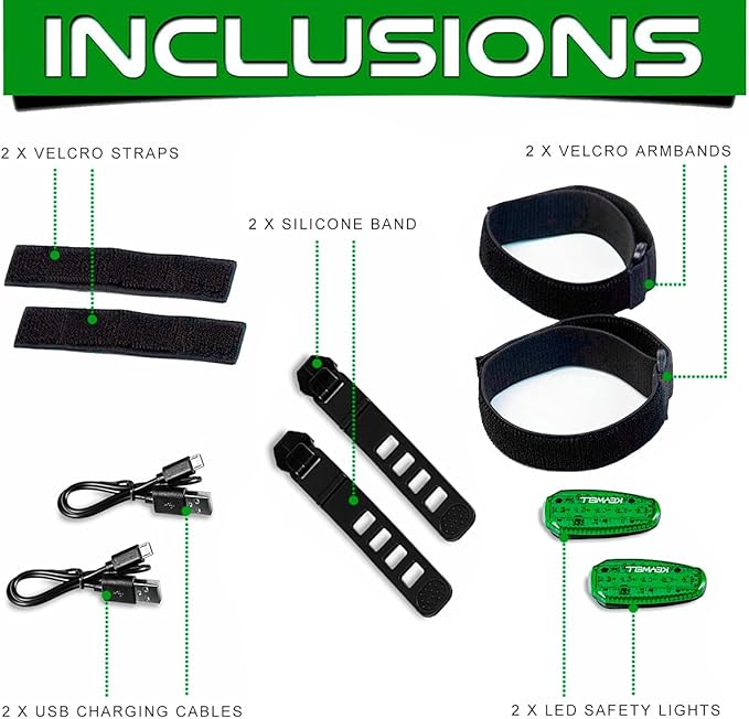 - UNRIVALED VERSATILITY & WATERPROOF- These running Lights can be used as warning lights for Running, Cycling, Walking, Hiking, Jogging, Camping, Backpack's, Kid's, dog's, Walker's Stroller's, Wheelchairs & More! Water resistant rated to IPX5 - protected against splashing water from any angle-be seen in any weather day or night.