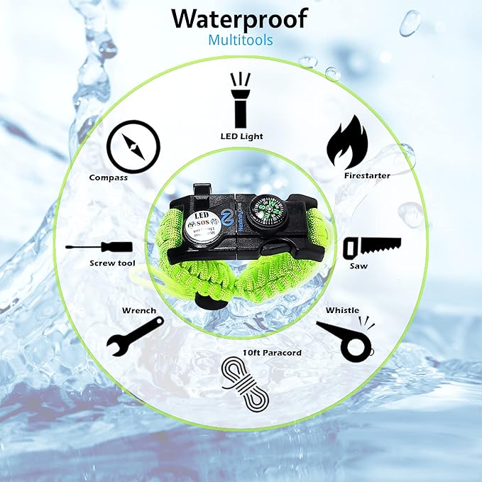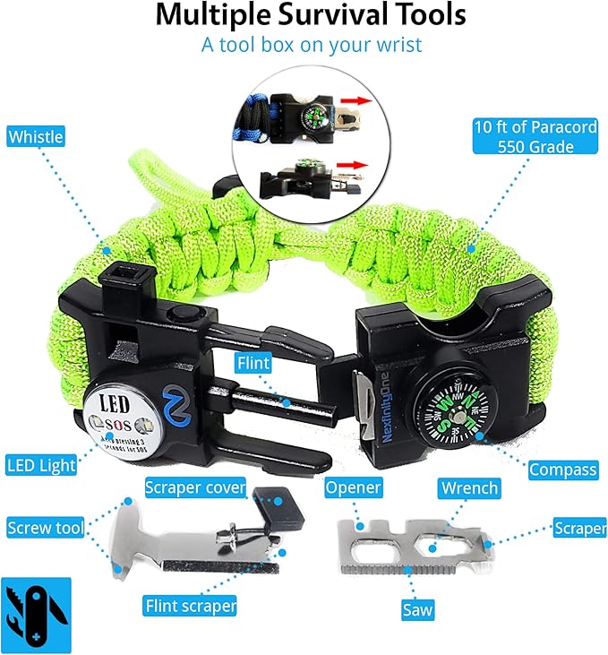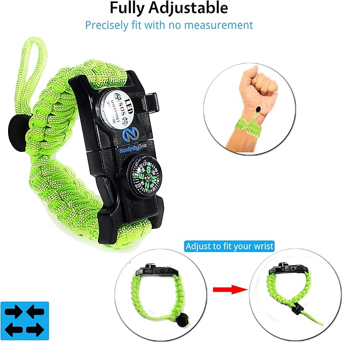 - Emergency Survival Bracelet with SOS LED Light - Get noticed in low light conditions with the bright LED light on this survival bracelet, helping rescuers find you with ease.