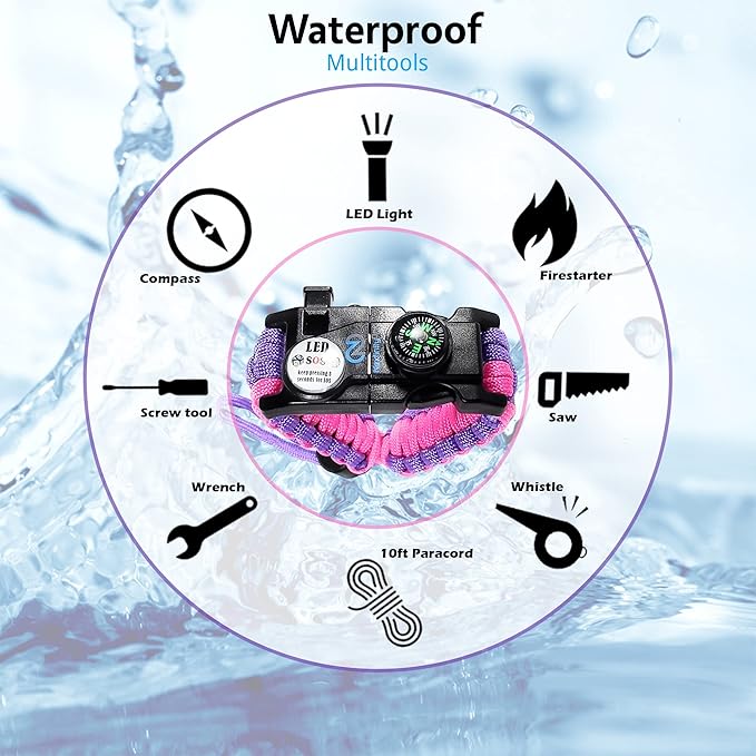 - SOS LED Light - This emergency survival bracelet has an LED light that can be used to help rescuers find you at night!