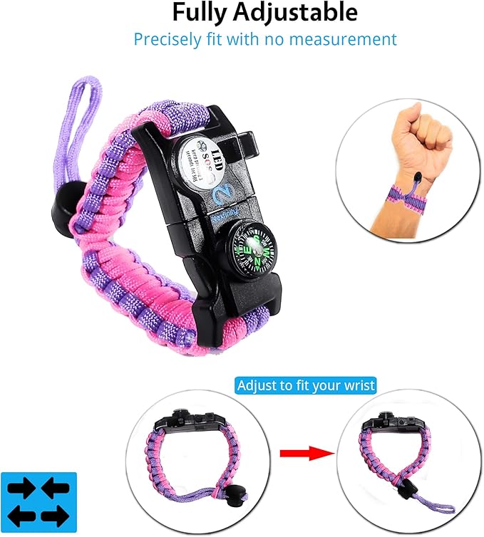 - 550 ADJUSTABLE PARACORD BRACELET - 10 feet of tactical paracord for women or men with different size wrists to be used in a variety of ways in the wilderness