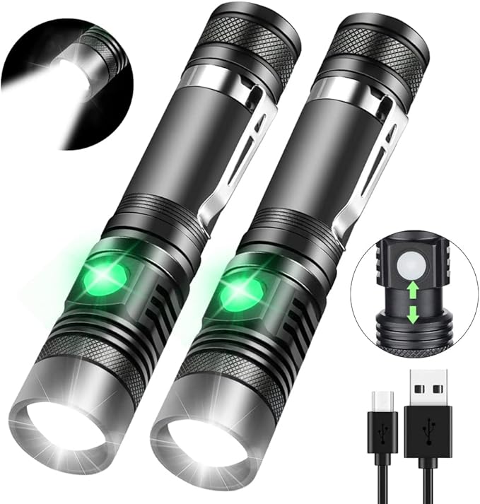 iToncs Rechargeable Flashlight, Pocket-Sized Torch with Super Bright High Lumens LED, Water Resistant, Zoomable, LED Tactical Flashlights with Clip, 4 Modes for Camping Hiking and Emergency(2 Pack)