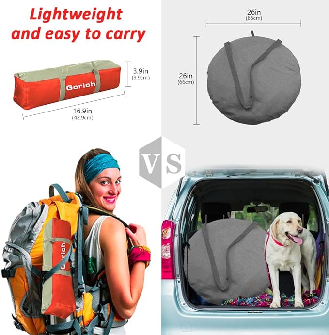 - Easy Set Up & Carry: Setting up fast within minutes. Gorich beach tent is much easier to fold than any kind of beach tents. It could fold down to a travel size of 17"H x 4"L x 4"W, weight 3.5 lbs, with a campact carrying bag that you even won’t notice it on your backpacks, much easy to carry