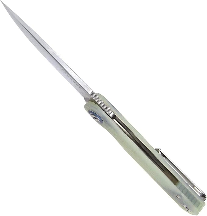 Wind Pocket Knife Flipper Sandvik Steel G10 Handle Folding Knife Ball Bearing with 2-Position Clip for Camping Survival and EDC (Transparent Cyan)