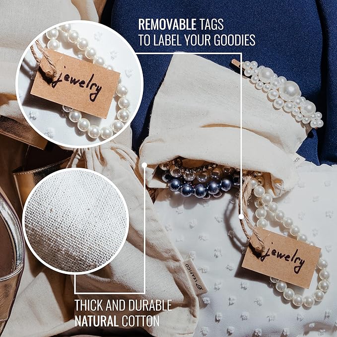 - Removable Tags - The fabric bags have removable tags for labeling the content. Never get lost in your stored goodies.