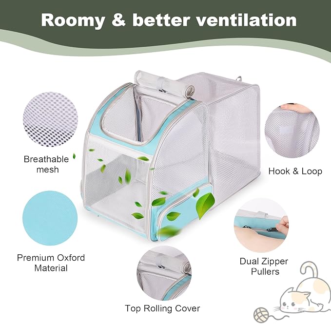 halinfer Cat Backpack Carrier - Expandable Pet Carrier for Medium Cats and Small Puppys Up to 16 Pounds, Collapsible Soft Side Kitten Travel Bag with Cushion Mat for Outdoor Traveling Hiking