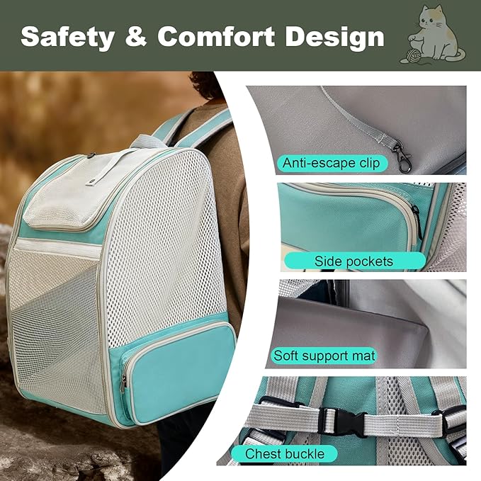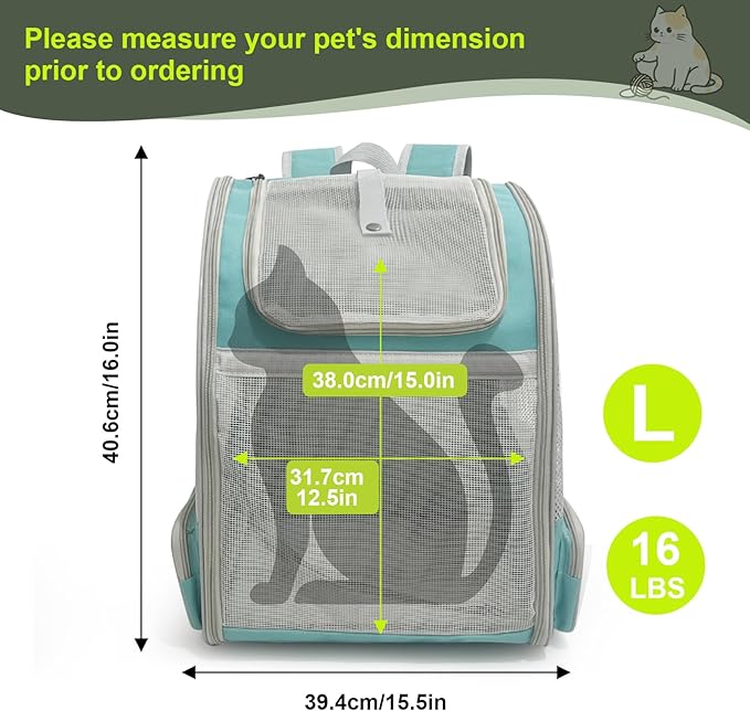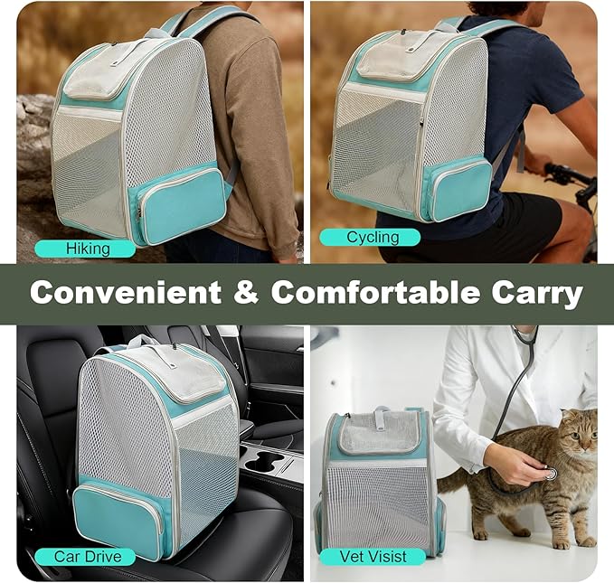 - 2025 Ventilation Design with 3 sides fully ventilation cat backpack carrier. This pet carrier backpack for cat and small dog, is design for outdoor hiking and travel for a long time without worrying about pet stuffiness inside. 3-side ventilated mesh material features the best ventilation and air circulation ever. Also give wider perspective view and allow pet to enjoy the sunshine and scenery with your outing.