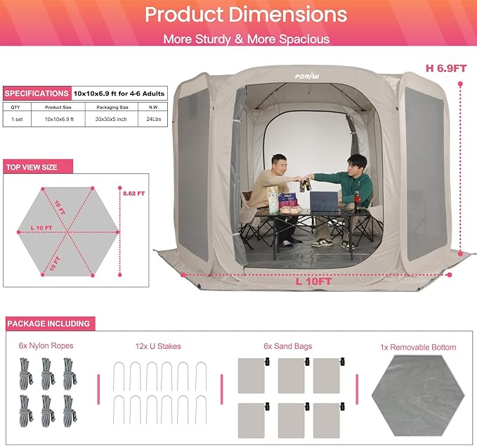 - Versatile Use - Perfect for camping, family gatherings, backyard naps, and more. This portable screen house enhances your outdoor leisure time, offering a comfortable space to relax and enjoy nature. Great for holidays and everyday outdoor activities