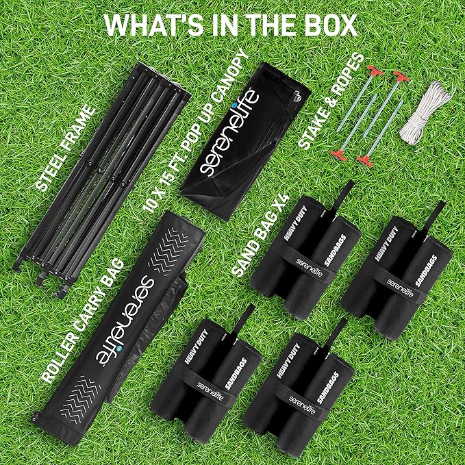 Pop Up Canopy Tent 10x15 - Commercial Instant Shelter Foldable/Collapsible Sun Shade Canopy Pop Up Tent w/Waterproof UV Resistant Tent Top, Portable Carry Bag & Sand Bag - SereneLife SLGZ15BL (Black)