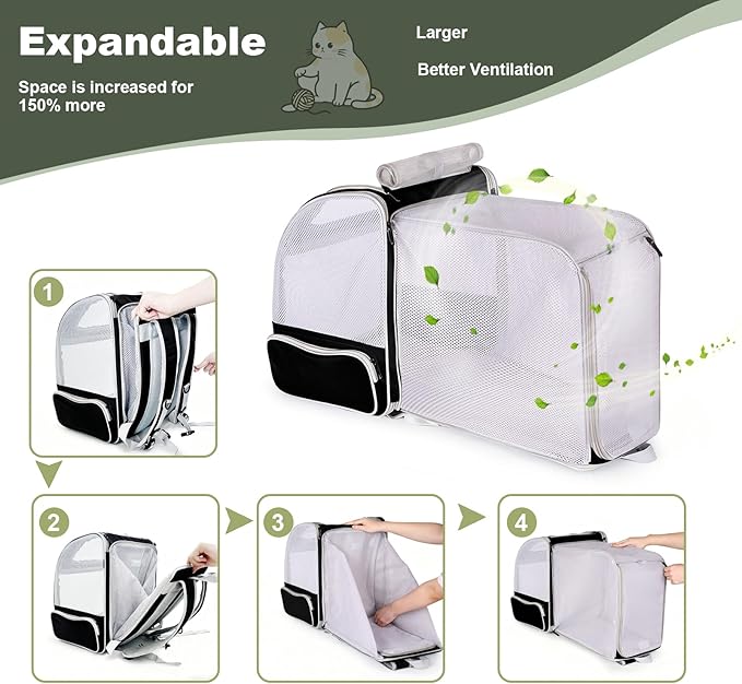 - 2025 Easy Breathable Design with 3 sides fully ventilation cat travel carrier backpack. This pet carrier backpack for kitten and small dog, is design for outdoor hiking and travel for a long time without worrying about pet stuffiness inside. 3-side ventilated mesh material features the best ventilation and air circulation ever. Also give wider perspective view and allow pet to enjoy the sunshine and scenery with your outing.