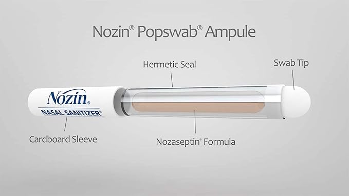 Nozin® Nasal Sanitizer® Antiseptic Popswab® Ampules 10ct Pack | Kills 99.99% of Germs | Alcohol Based 62%