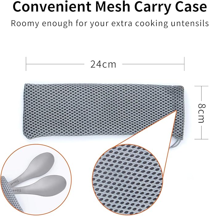 - Included Components : Tibest 2 in 1 Titanium Camping Spoon and Fork (x2), Mesh drawstring pouch